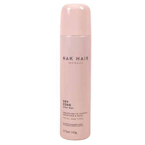 De Dry Zone Spray Wax van NAK Hair is ontwikkeld om het haar een droge en matte textuur te geven. Daarnaast geeft het definitie aan het haar en creëert het een fixatie. Het is een perfect product om weerbarstig haar onder controle te houden en het verwijdert pluis en losse plukjes uit het haar. Deze spray is een goede finish voor het haar omdat het ook het haar lichte slag geeft en ervoor zorgt dat het haar goed blijft zitten. Daarnaast is het geweldig voor mensen die van wax houden, maar niet graag plakkerige handen hebben.